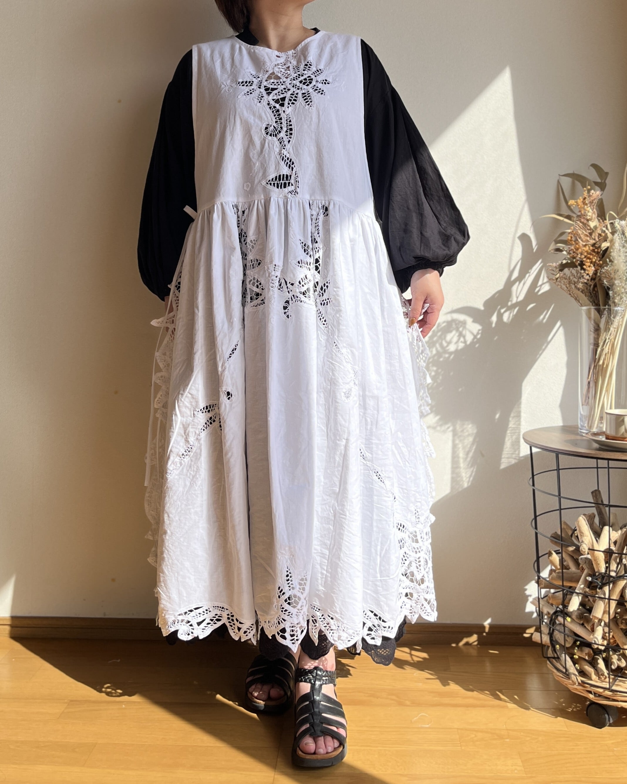 ヴィンテージクロス エプロンワンピース